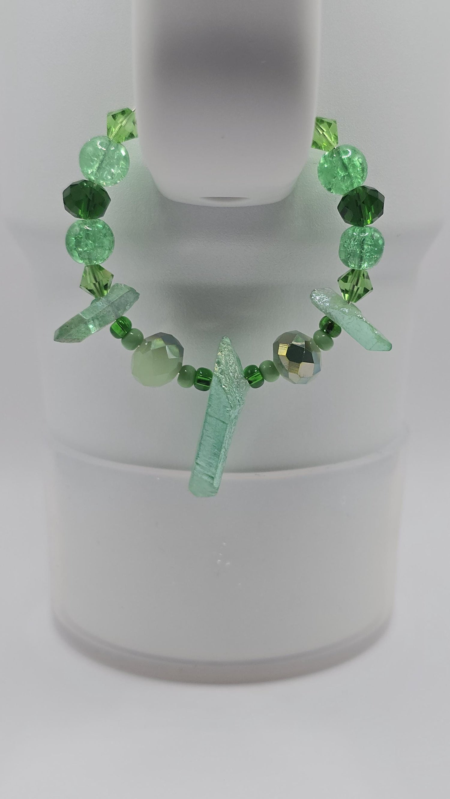 Hand made handle charms made with wire, glass beads, quartz, precious stones,...