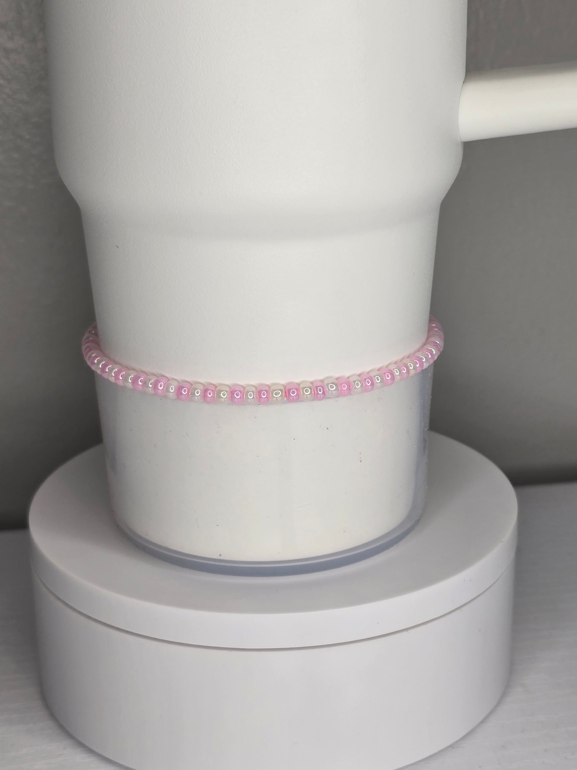 One simple boot bracelet of baby pink and white czech seed beads alternating.