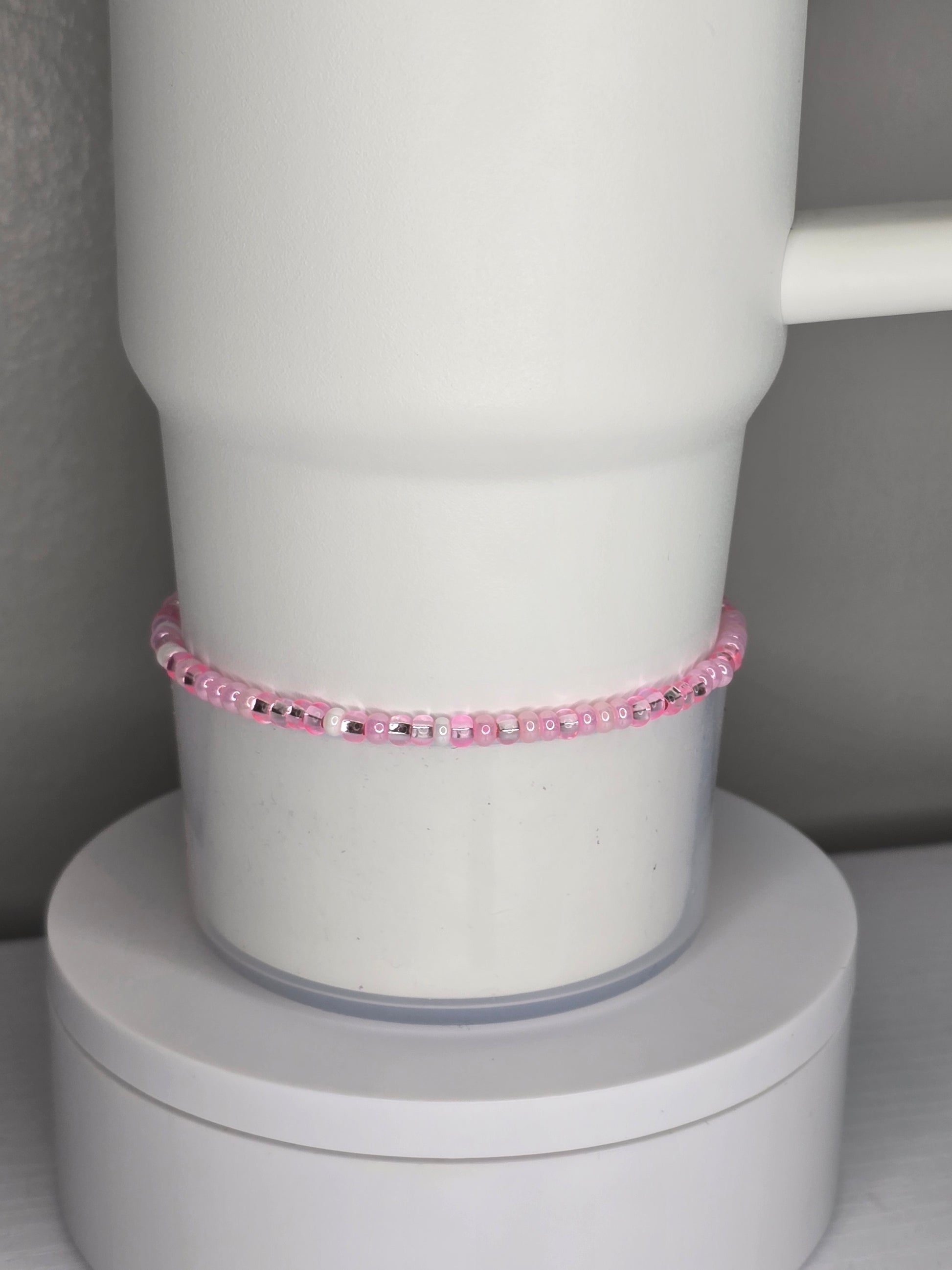One simple boot bracelet of baby pink and white czech seed beads.