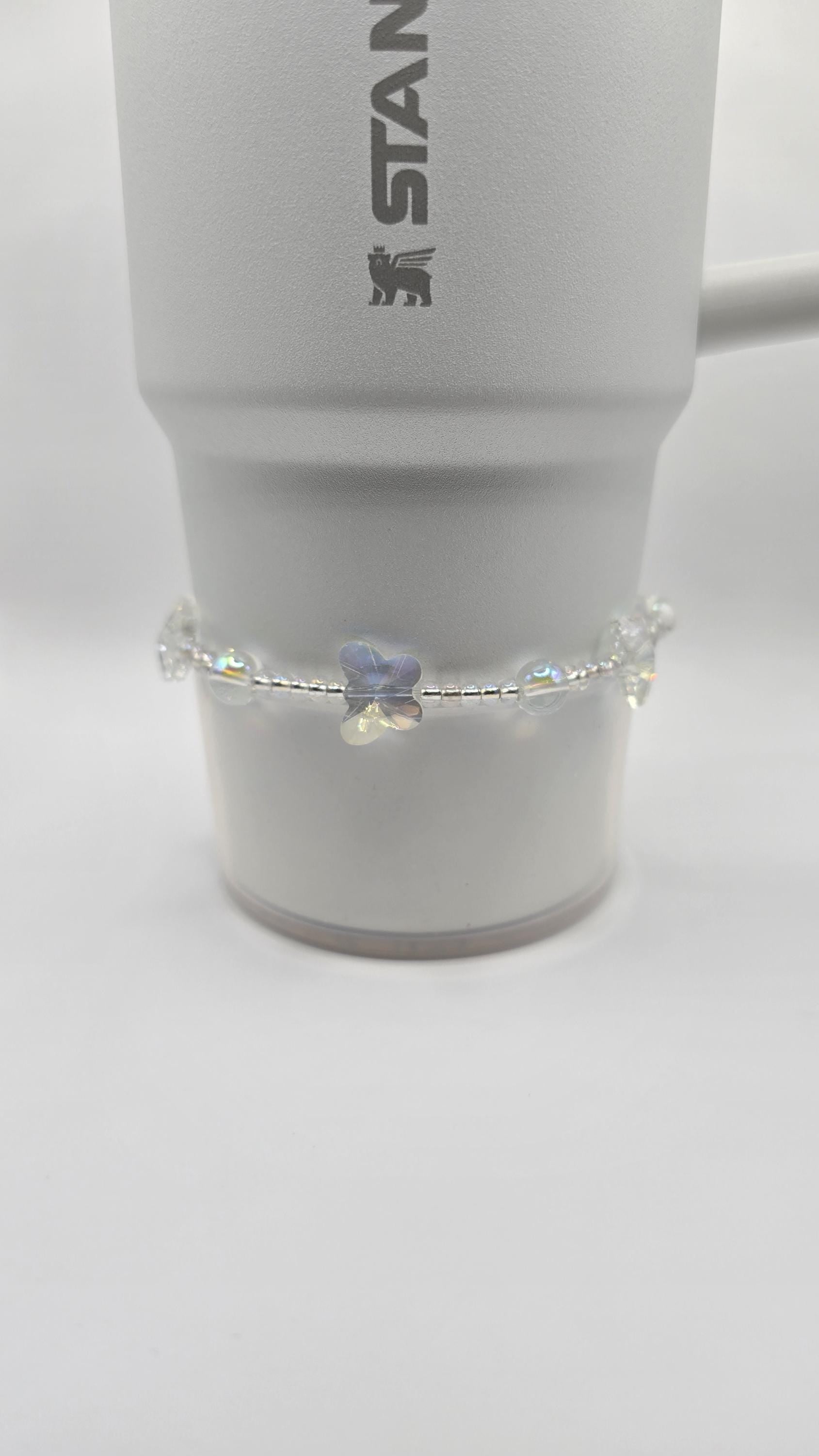 Hand crafted boot bracelet made with Czech glass seed beads, glass butterflies and glass beads. Made to fit most 20/30/40oz tumbler brands. Boot and cup are not included.