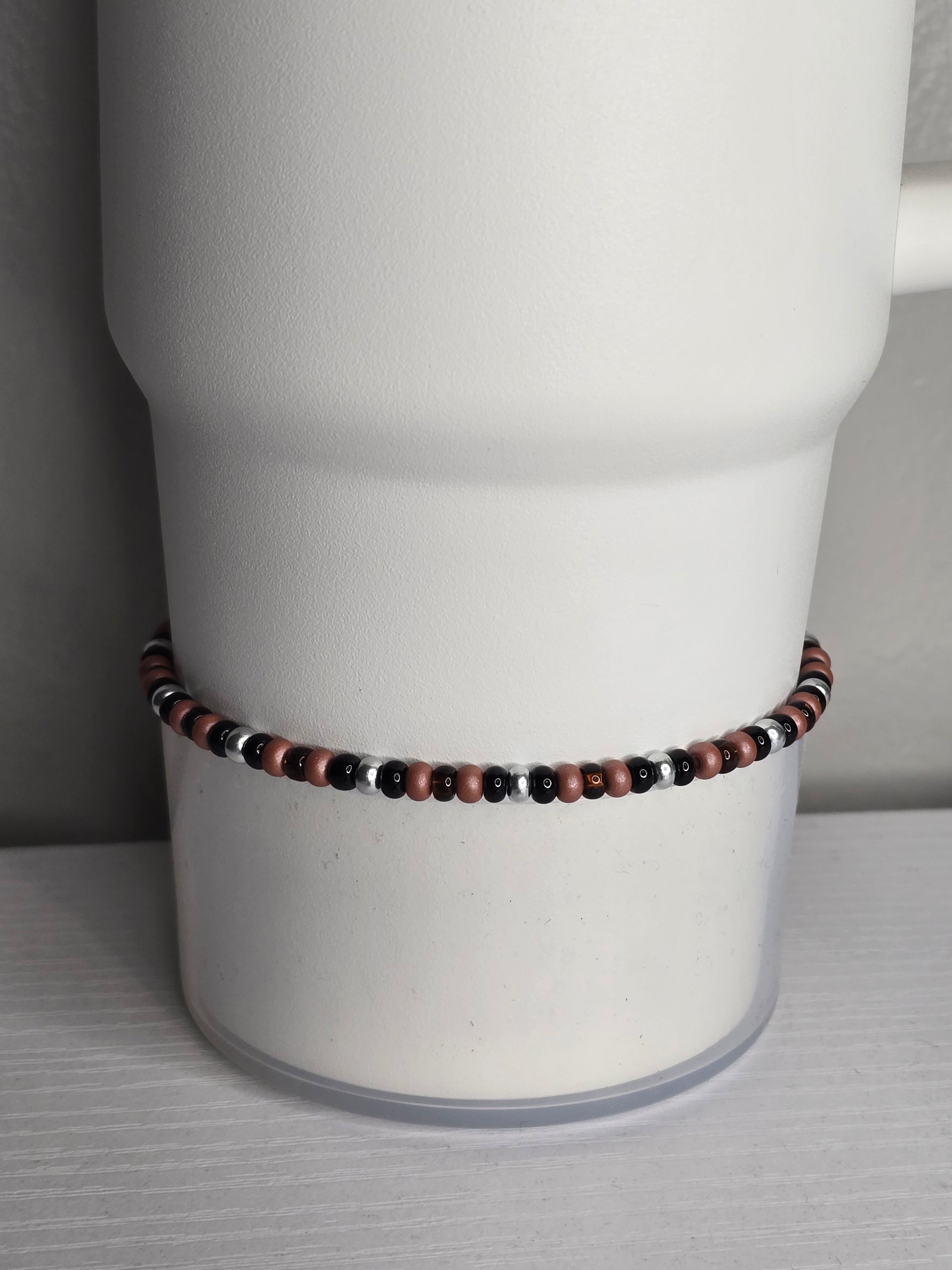 One simple boot bracelet of light brown, dark brown and silver czech seed beads.
