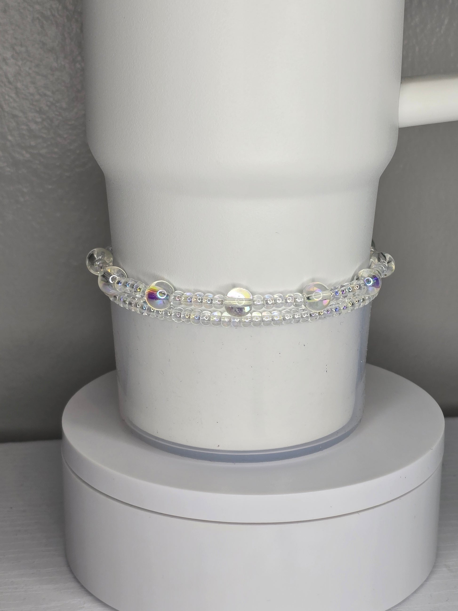 One simple boot bracelet of iridescent czech seed beads, and an additional boot bracelet with iridescent czech seed beads and iridescent glass.